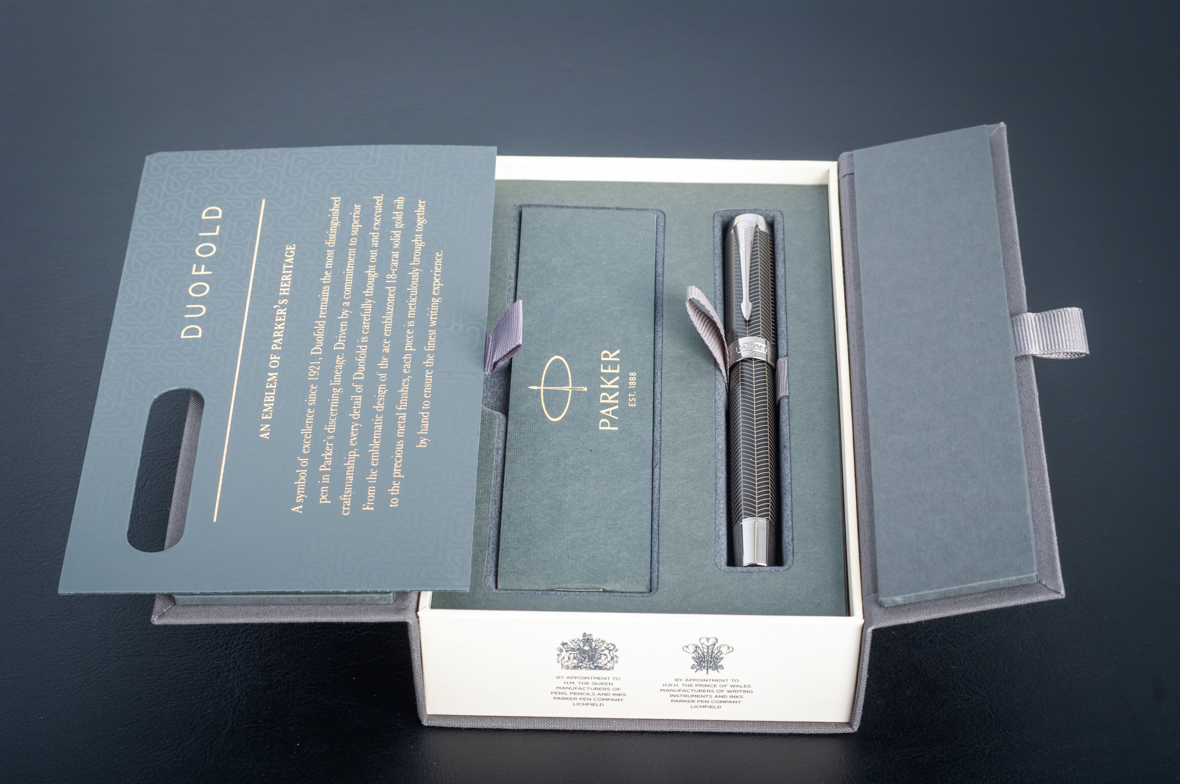 Ручка роллер Parker Duofold Prestige Centennial Black Chevron CT от официального дилера Parker во Владикавказе. Вы можете дополнительно заказать гравировку, которая подчеркнет Вашу оригинальность и придаст памятность статусному подарку. Все ручки Паркер поставляются в фирменном футляре.